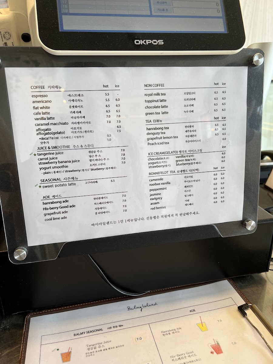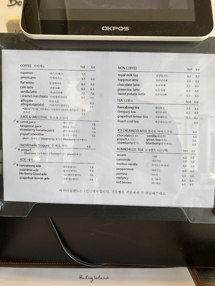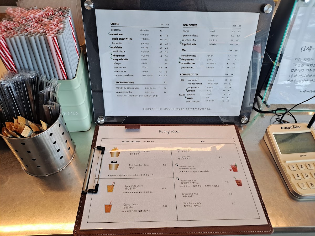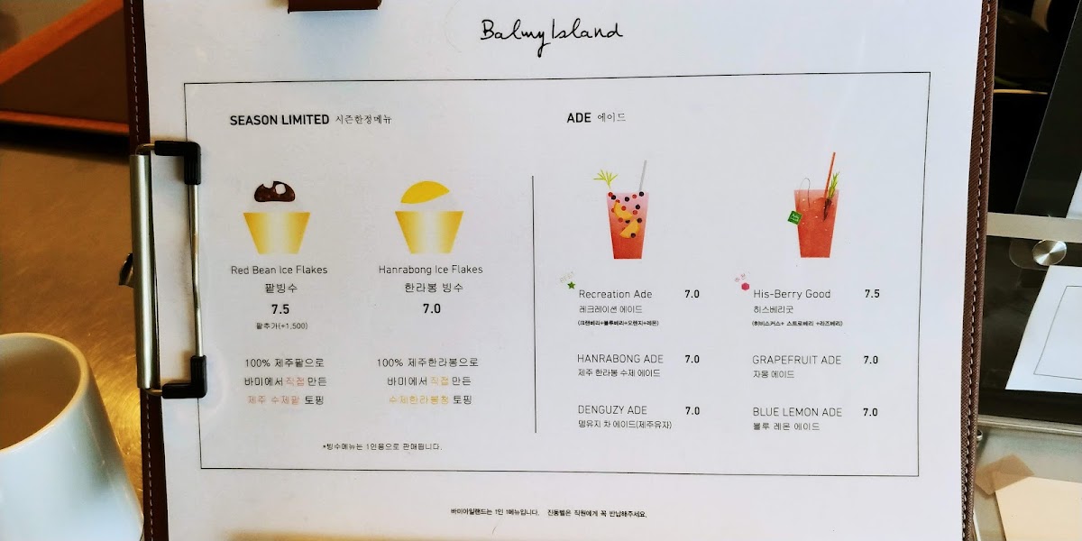 Balmy Island 바미아일랜드 Menu